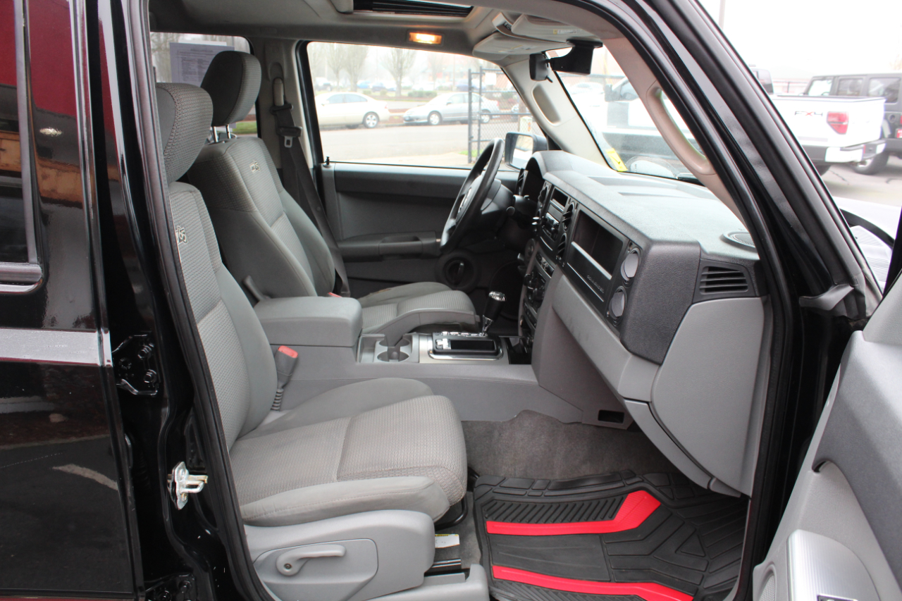Inside, you'll find a spacious interior with a Full-length floor console, cloth covered headliner, and plenty of cargo space for all your gear. Safety is a top priority with Side airbags, Front/rear side curtain airbags, and the Tire pressure monitoring warning system. Plus, with the included Carfax report, you can hit the road with confidence knowing the history of your new ride. Don't miss out on the chance to make this Jeep Commander your own!