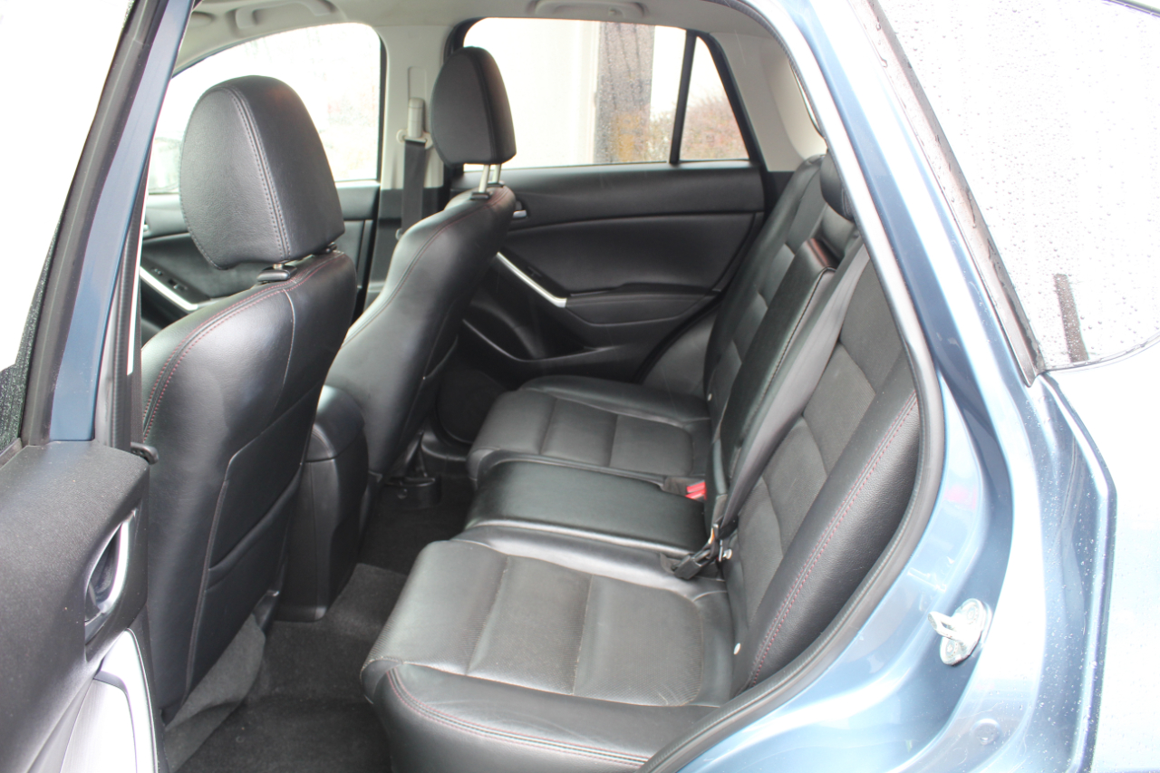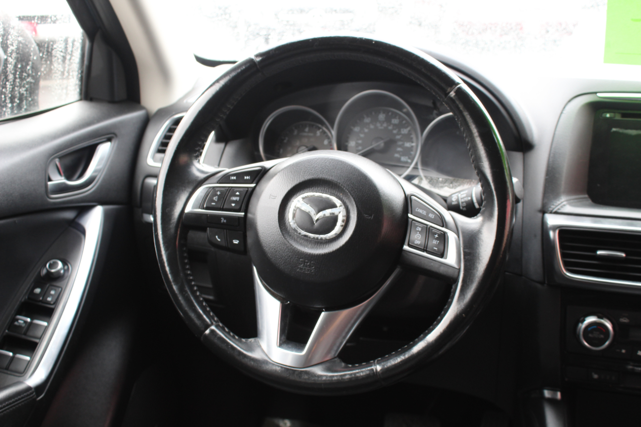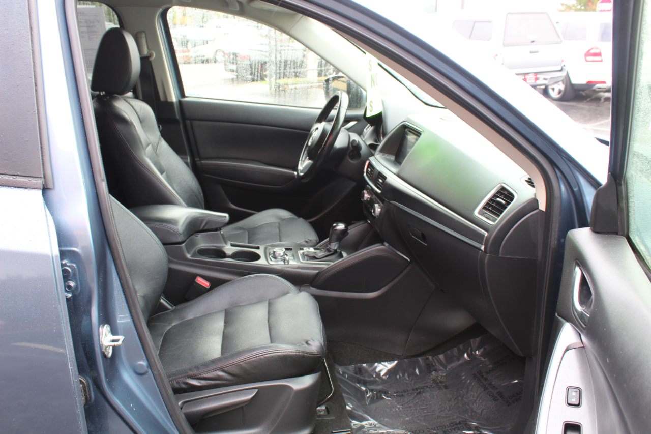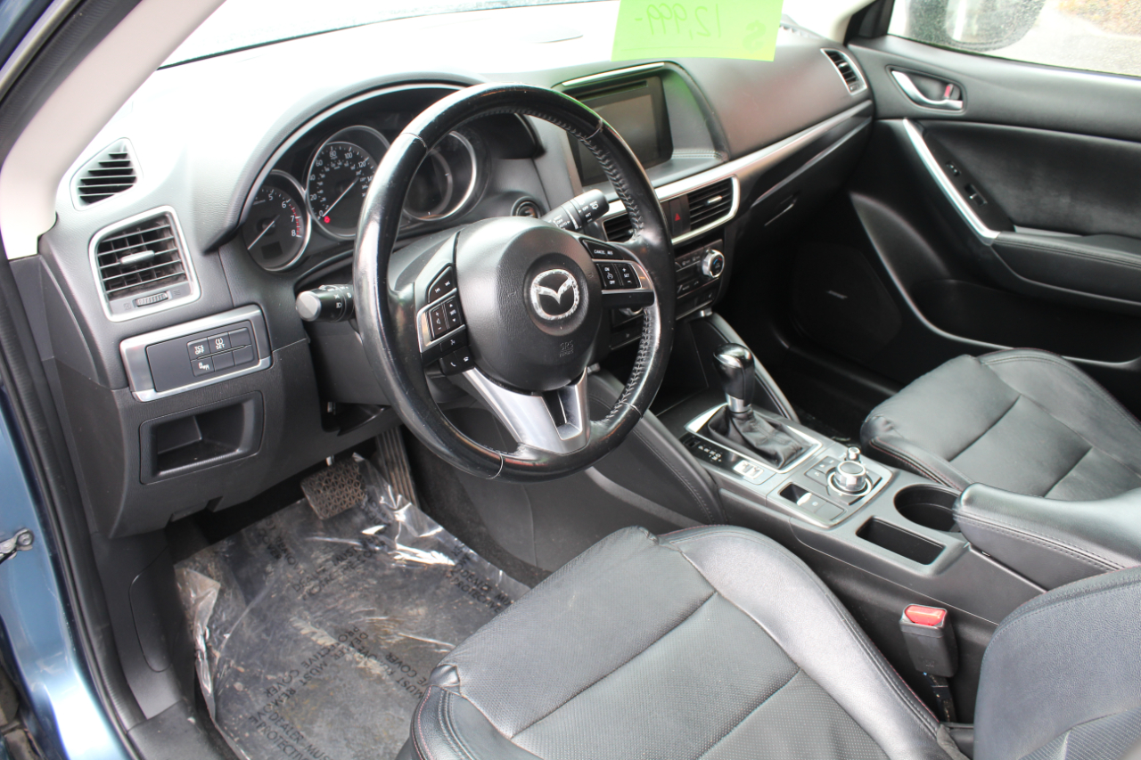 Hop into this sleek Blue 2016 Mazda CX-5 and get ready for some fun-filled adventures! This zippy SUV is packed with safety features like ABS brakes, traction control, and a full suite of airbags to keep you and your loved ones secure on the road. The luxurious leather seats are perfect for those chilly mornings, and the front heated seats are a dream come true in the winter. Cruise control and steering wheel mounted controls make for a seamless driving experience, while the power sunroof lets in the perfect amount of sunshine on those beautiful days. The alloy wheels and rear spoiler give this CX-5 a sporty edge, while the automatic headlights and rain sensing wipers add a touch of convenience. Plus, with a Carfax report available, you can hit the road with confidence knowing this Mazda has been well taken care of. Don't miss out on the opportunity to make this feature-packed Mazda CX-5 yours today!
