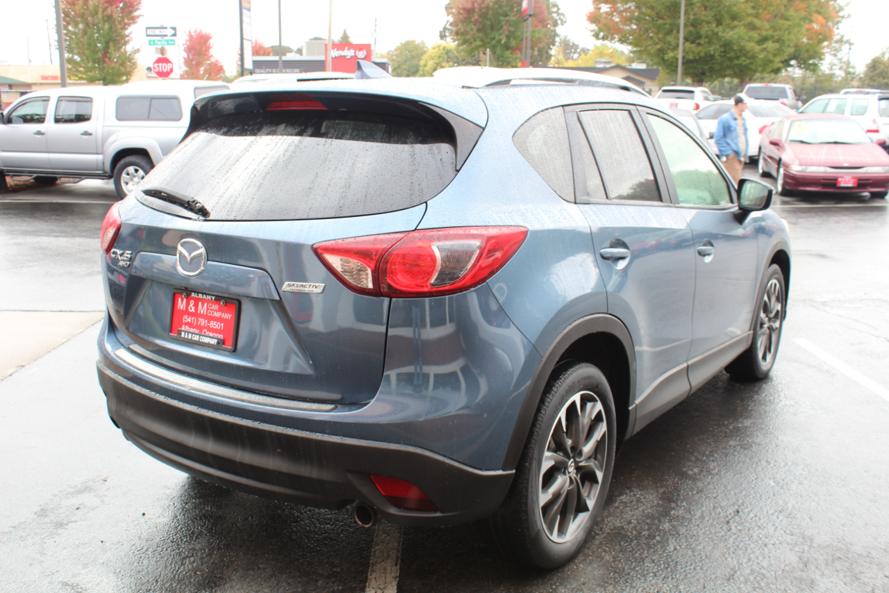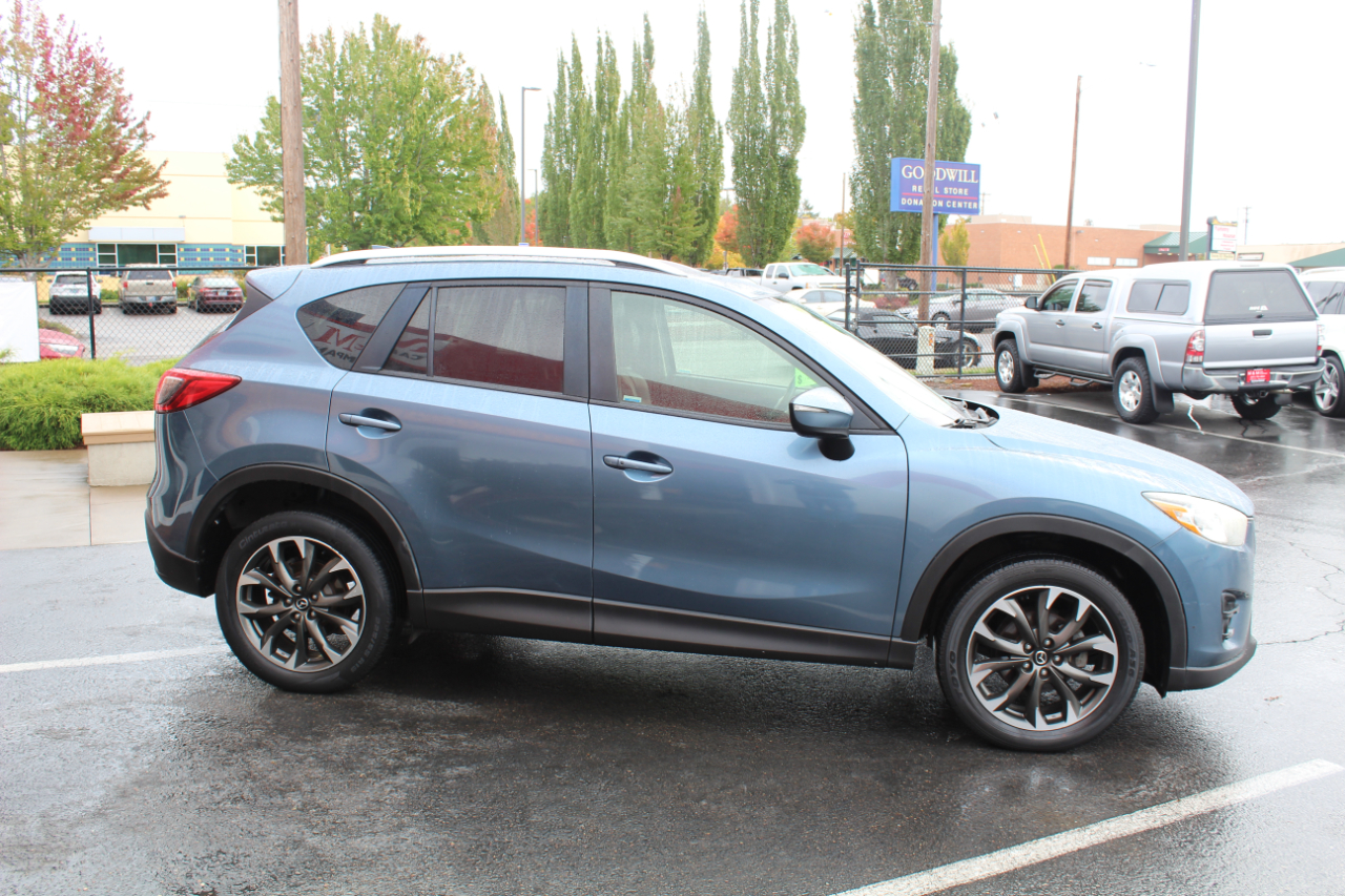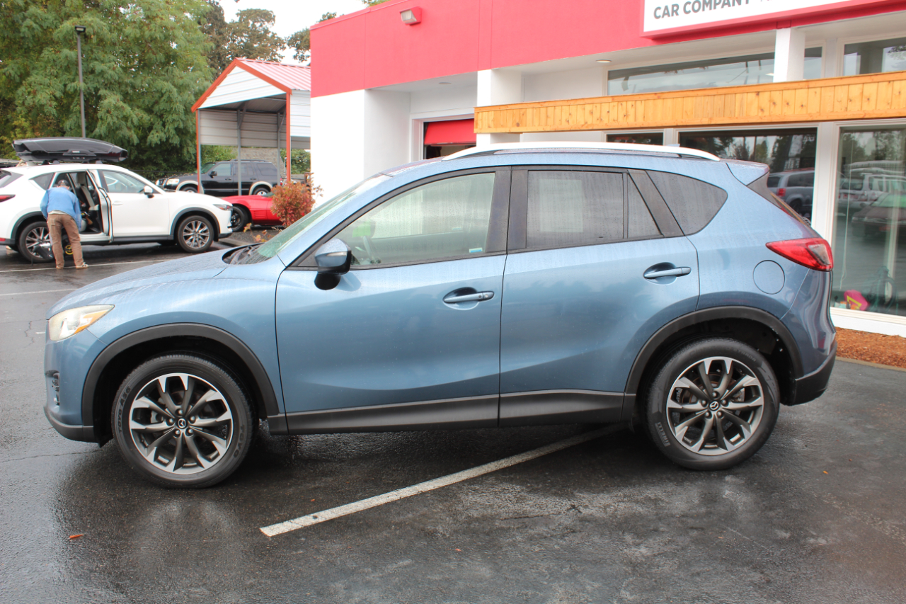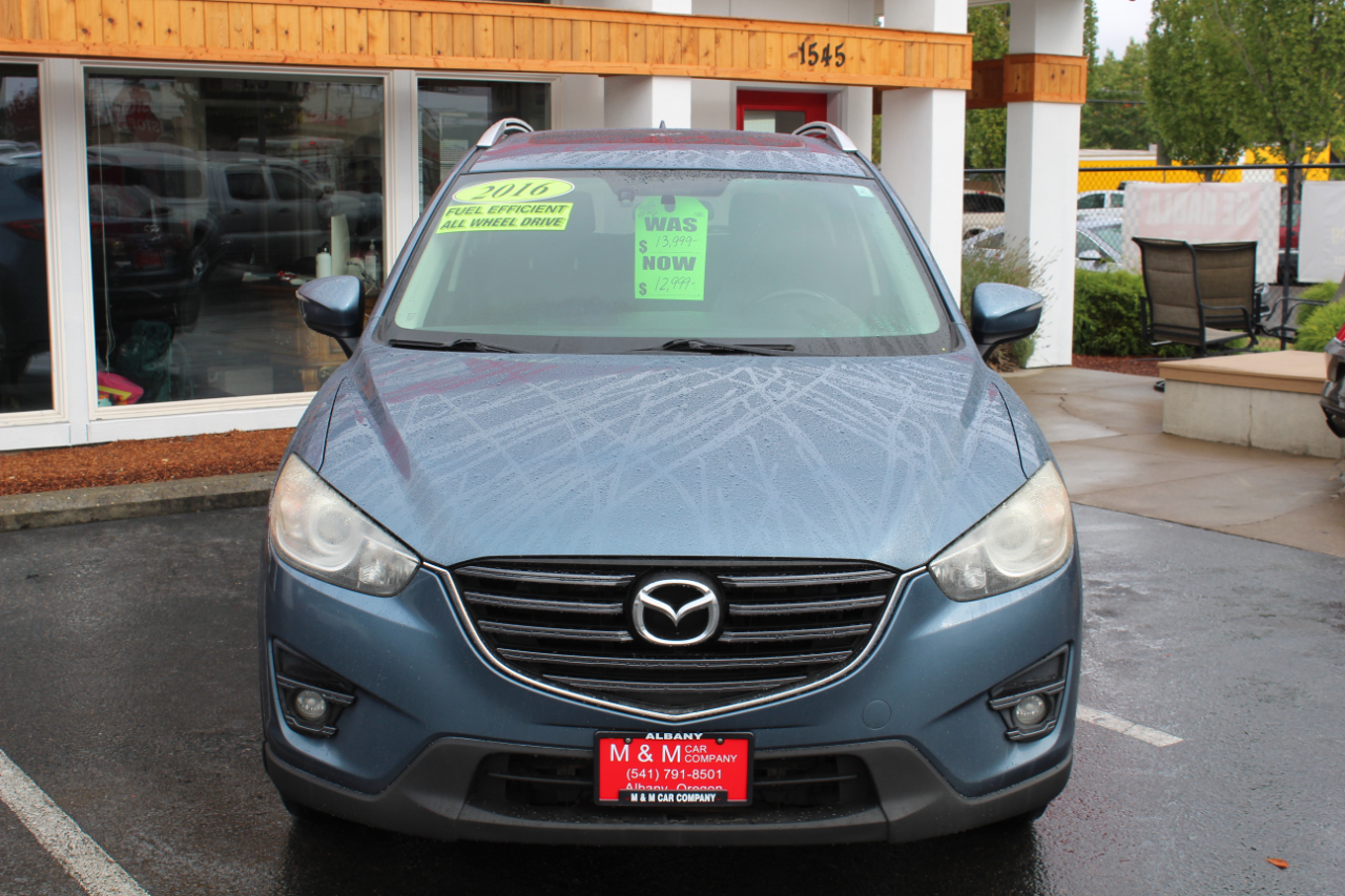 Hop into this sleek Blue 2016 Mazda CX-5 and get ready for some fun-filled adventures! This zippy SUV is packed with safety features like ABS brakes, traction control, and a full suite of airbags to keep you and your loved ones secure on the road. The luxurious leather seats are perfect for those chilly mornings, and the front heated seats are a dream come true in the winter. Cruise control and steering wheel mounted controls make for a seamless driving experience, while the power sunroof lets in the perfect amount of sunshine on those beautiful days. The alloy wheels and rear spoiler give this CX-5 a sporty edge, while the automatic headlights and rain sensing wipers add a touch of convenience. Plus, with a Carfax report available, you can hit the road with confidence knowing this Mazda has been well taken care of. Don't miss out on the opportunity to make this feature-packed Mazda CX-5 yours today!